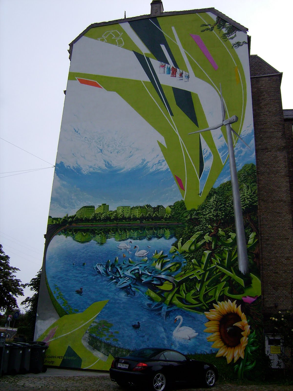 A mural by the lakes of the lakes. Massive swans!
