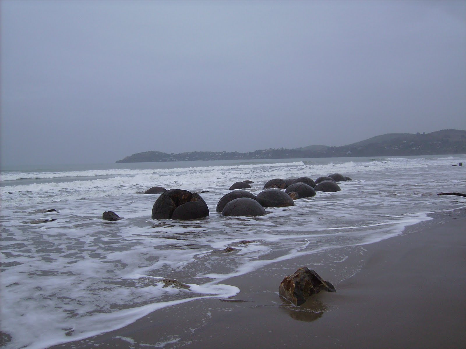 Dunedin being rather sleepy and dead, I naturally headed off to Christchurch the next morning. Hitching wasn’t quite as fast this go around, though I was at a decent spot, the rain deterred most from picking me up (and unbeknowst to me most travelers would be on the other end of the road). I finally caught a ride after a few hours with a rugby player originally from Tonga with one of those beautiful stories of coming to NZ on travel, finding a job with a rugby team, falling in love, getting married and having his first child, applying to the police force in Oamaru now at only twenty five. I felt very amused when he assumed me to be a Native American – perhaps from a solidarity standpoint, as we talked long on the oneness of the peoples from America, Hawai’i, Polynesia, New Zealand… He took me on a detour to the Moeraki boulders, oddly round things on a very muddy beach. On a mini exploration up the hill he took a big spill down into the mud. His character showed as he burst into laughter halfway down. Not miffed at all. Quite the antithesis of what I expected form a professional sportsman.