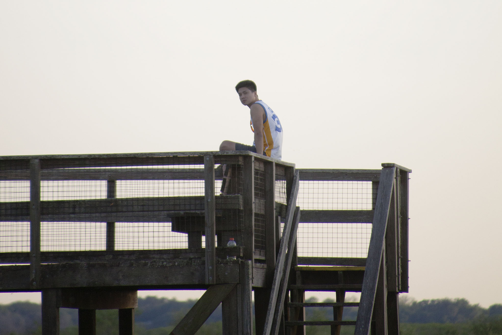 佳明坐扶手上