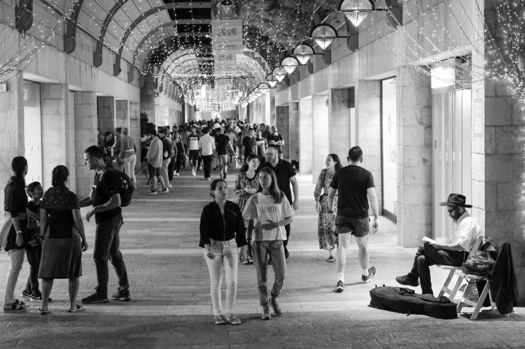 After wandering the Old City and the Church of the Holy Sepulchre, I rested in the afternoon before a very fancy dinner with a Taiwanese woman I’d met crossing the border from Jordan. We ate in the Jaffa Gate district – what a marked contrast from the Old City. Where the Old City was grimy, with dirt caked into every surface, New Jerusalem was shiny and clean and modern. Coming from Qalqilya, I couldn’t really enjoy it, even though I’d requested a clean restaurant specifically. The Israelis happily singing in their beautiful park around a public concrete piano with water fountains and public sculptures was superimposed with an after-image of the wall for me.